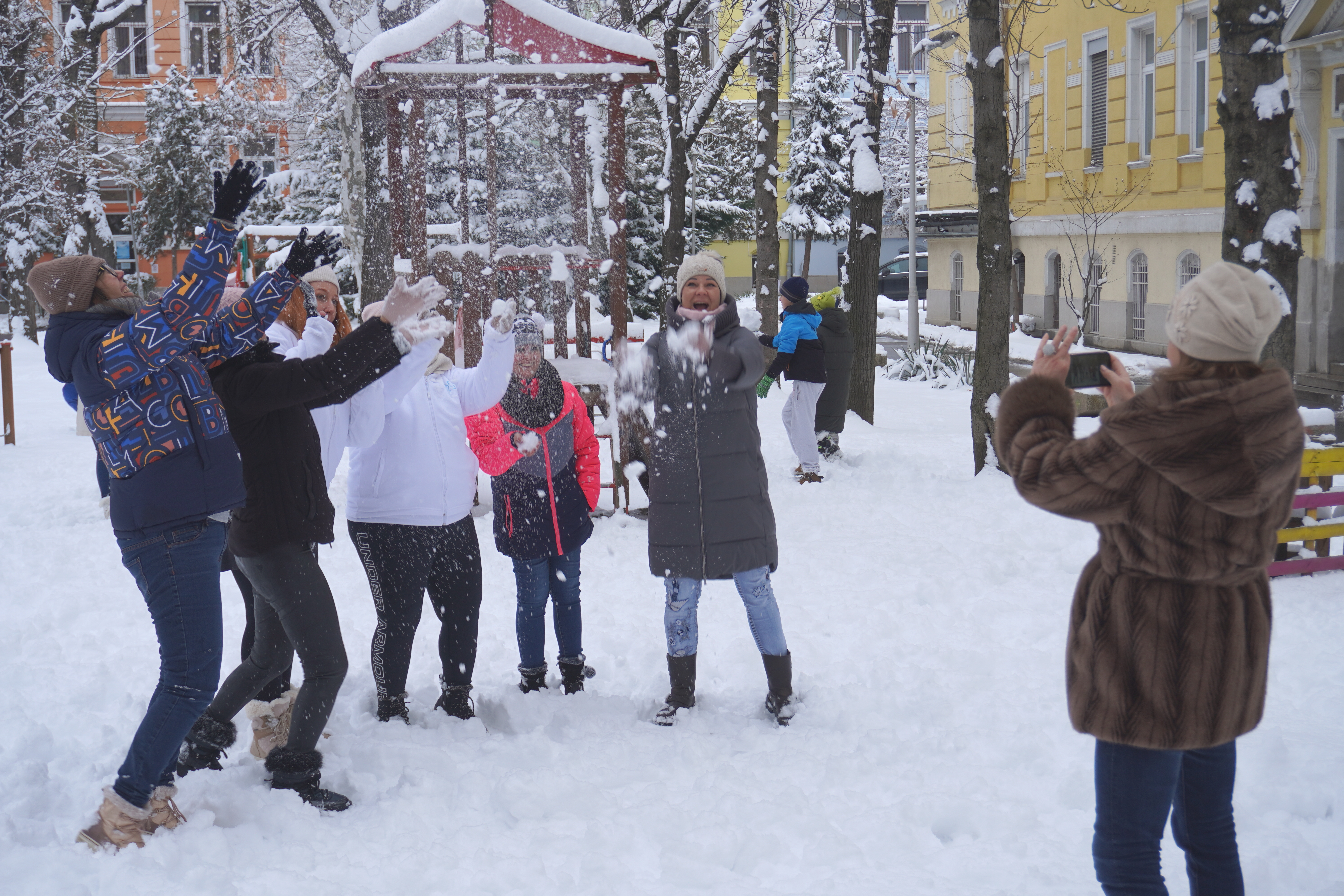 A Heim Pál gyermekkórház kis páciensei is nagy lelkesedéssel vetették bele magukat egy kiadós hócsatába, hóemberépítésbe és hóangyalkázásba az intézmény udvarán.