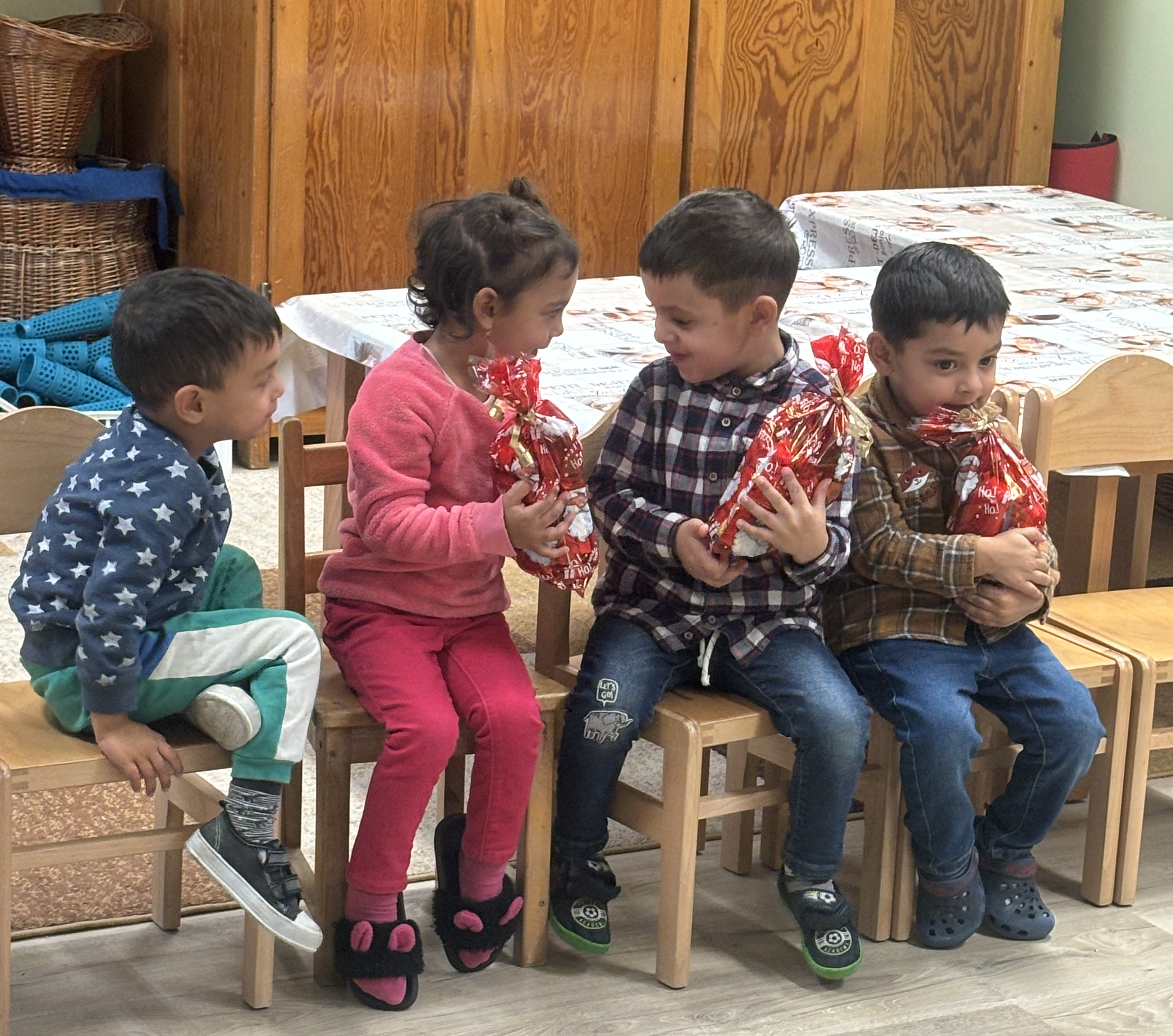A Mikulás érkezésekor a Debreceni Egyetemen Erasmus program keretében tanuló külföldi egyetemisták is jelen voltak, akik szakmai terepmunkán kísérik figyelemmel az óvodában zajló pedagógiai munkát, a hátrányos helyzetű gyerekek felzárkóztatását és iskolai életre való felkészítésüket.