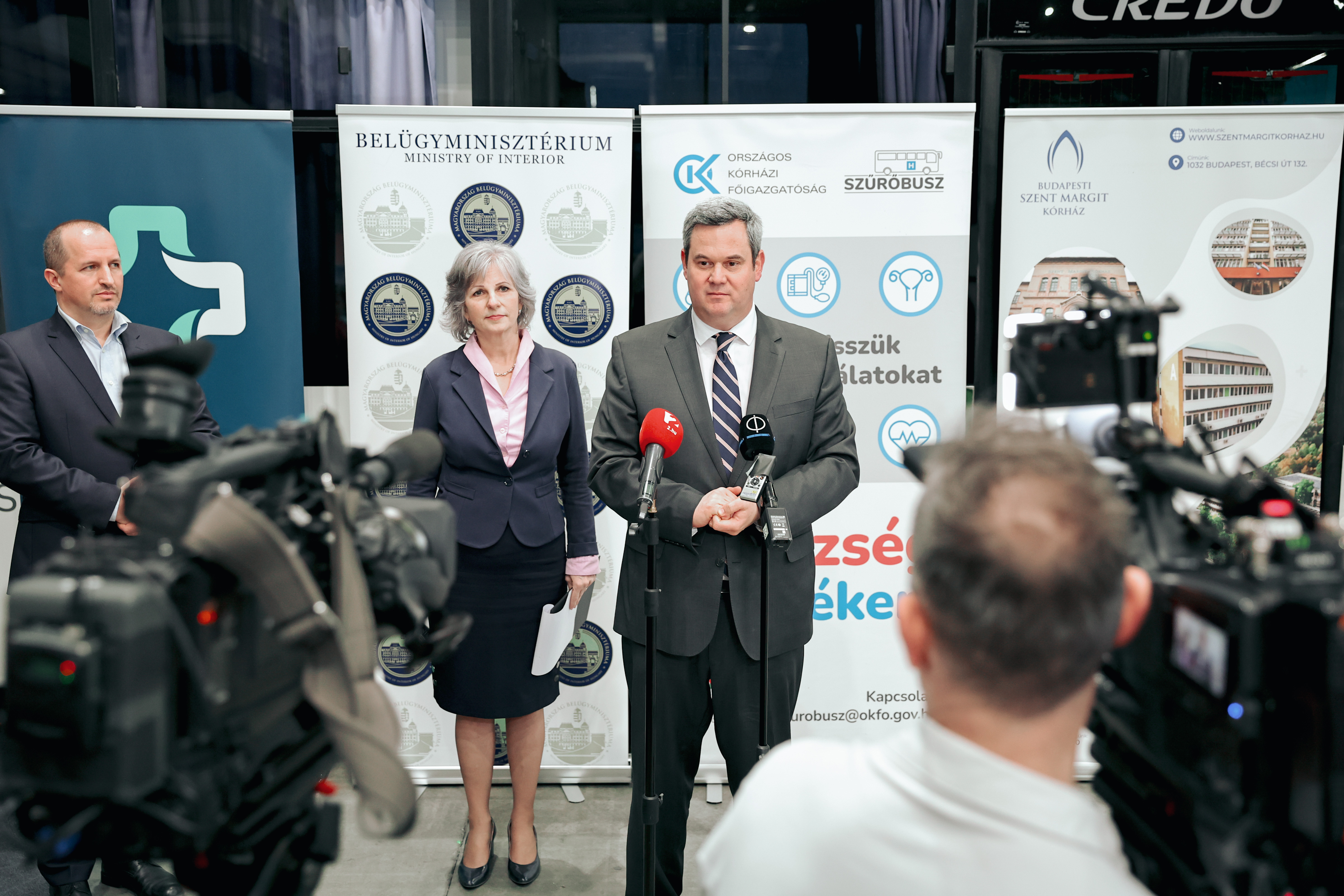 Bábiné Szottfried Gabriella, az Országos Kórházi Főigazgatóság főigazgató-helyettese beszámolt arról, hogy a „Helybe visszük a szűrővizsgálatot” országos program egyik szűrőbuszán – az állásbörze ideje alatt – különböző kardiológiai szűrésen vehetnek részt az érdeklődők. Elmondta, országosan tíz szűrőbusz teljesít szolgálatot, nyolc vidéken, kettő pedig Budapesten és Pest vármegyében. A szűrőbuszon magas szintű kardiovaszkuláris szűrővizsgálatok érhetők el. Az „Egészségsziget” programjain keresztül lehetőség van betekinteni az egészségügyi dolgozók munkájába, kicsit közelebb hozni magunkat a társadalomhoz és vele megmutatni mindenkinek azt a csodálatos világot, ami bennünk él, mikor segítünk, ápolunk, gyógyítunk.