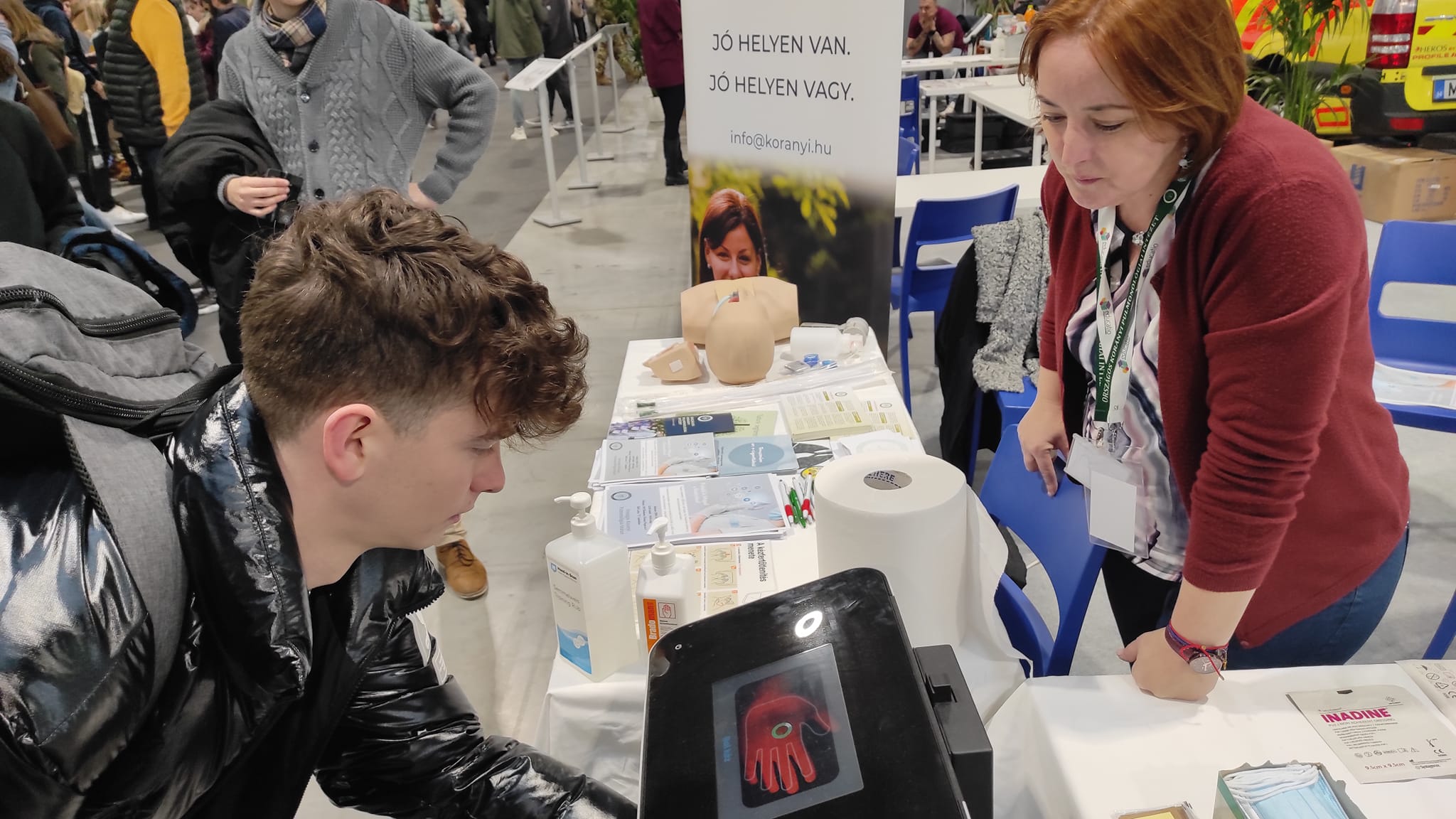 A kiállítás ideje alatt megannyi érdeklődő fiatallal találkoztak kollégáink, akik az egészségügyi hivatás szépségeire igyekeztek felhívni a pályaválasztás előtt állók figyelmét. Olyan érdekes és látványos eszközökkel érkeztek a helyszínre, amelyek segítségével a látogatók kipróbálhatták az újraélesztést, az intubálást, a bronchoszkóp használatát, valamint elsajátíthatták a helyes kézfertőtlenítés technikáját és felmérhették állóképességüket is. Az idei év különlegességeként a GOKVI szűrőbusza is megtekinthető volt az eseményen, amely kivételes érdeklődésnek örvendett. Munkatársaink lelkesen mutatták be a szűrőbusz működését, felépítését és elrendezését, az országban végzett szűrőbuszos program jelentőségét.