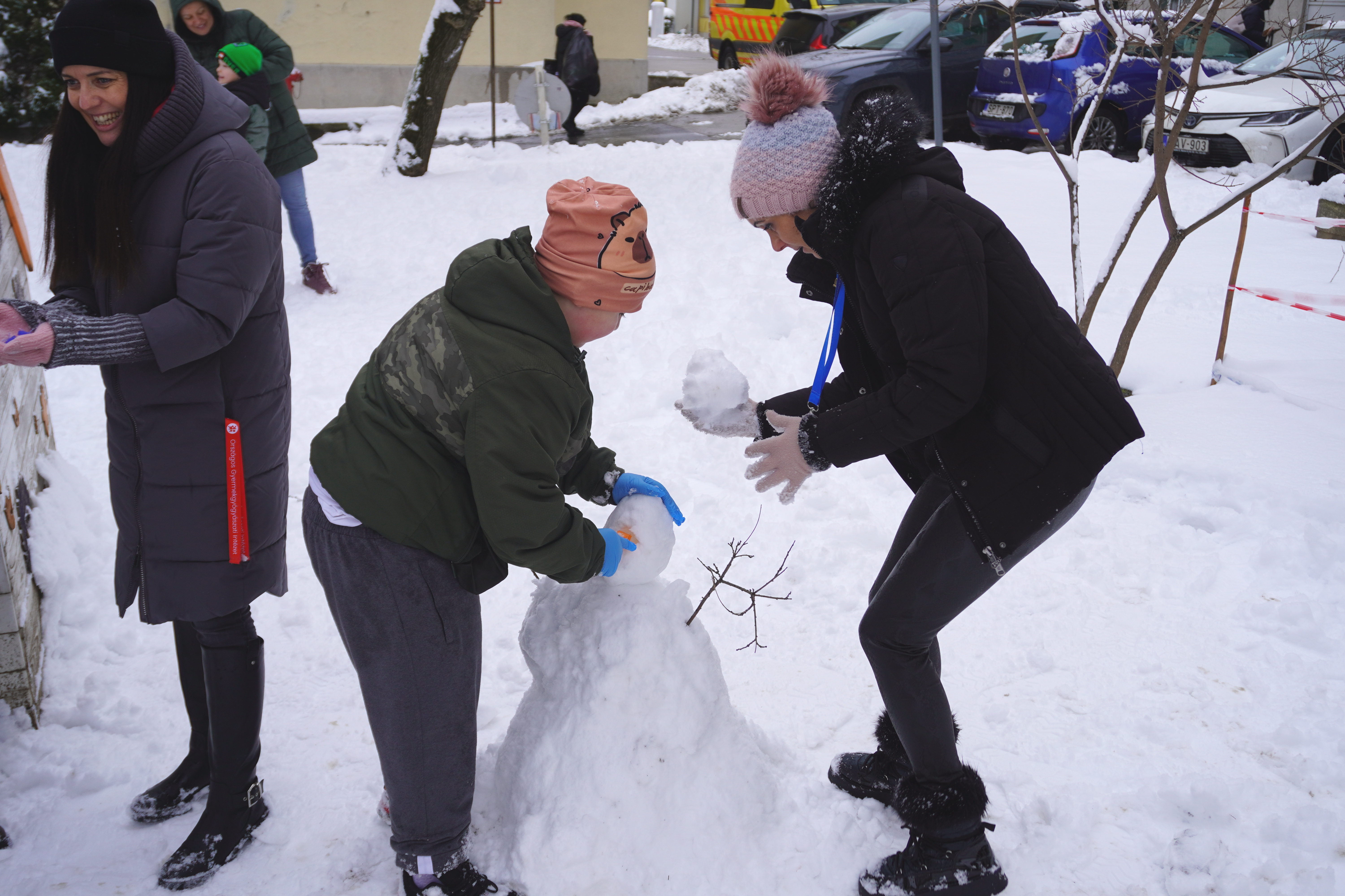 A Heim Pál gyermekkórház kis páciensei is nagy lelkesedéssel vetették bele magukat egy kiadós hócsatába, hóemberépítésbe és hóangyalkázásba az intézmény udvarán.