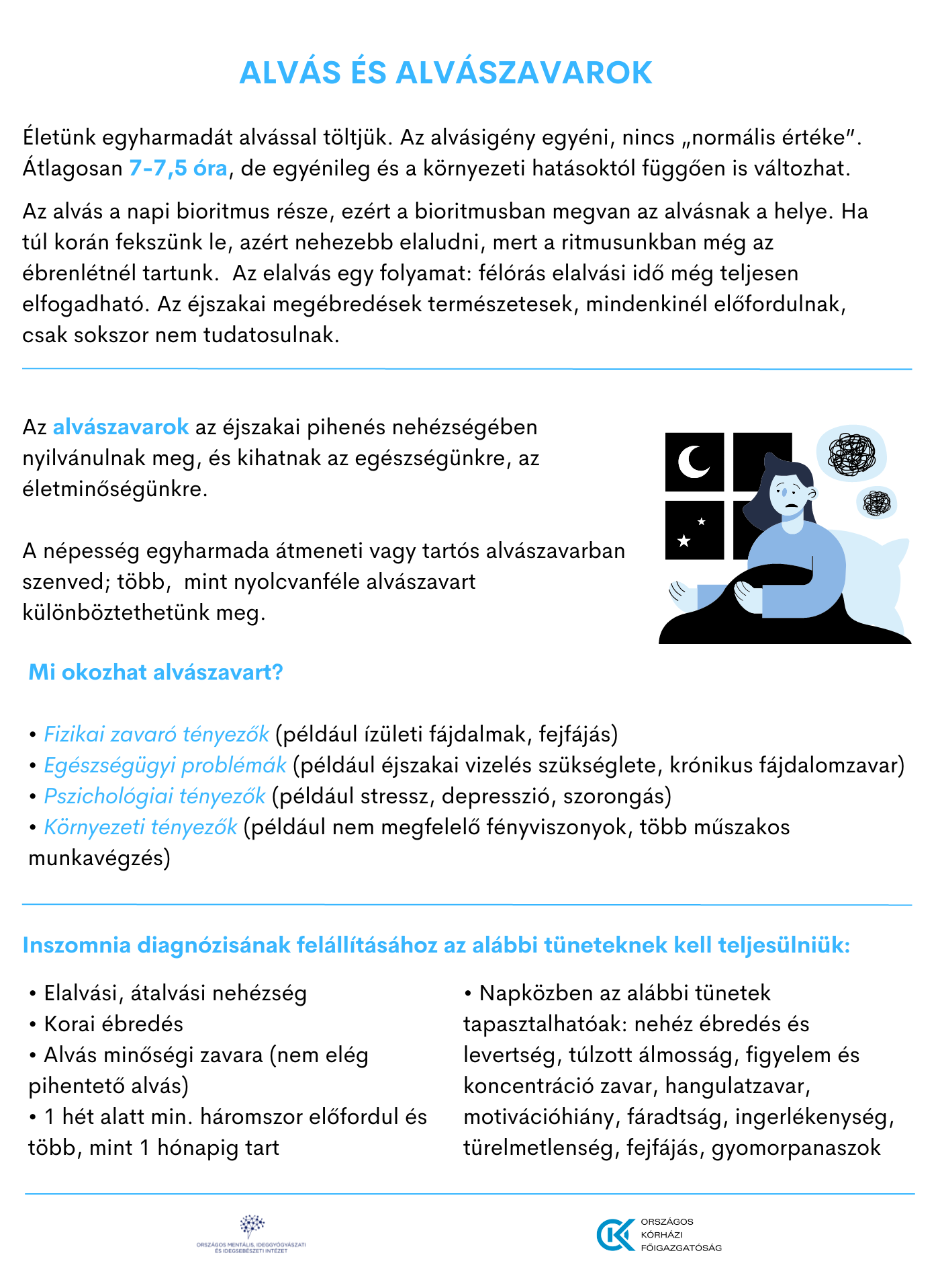 Az Országos Mentális, Ideggyógyászati és Idegsebészeti Intézet lakossági tájékoztatójában ezúttal az alvászavarokról olvashatnak bővebben.