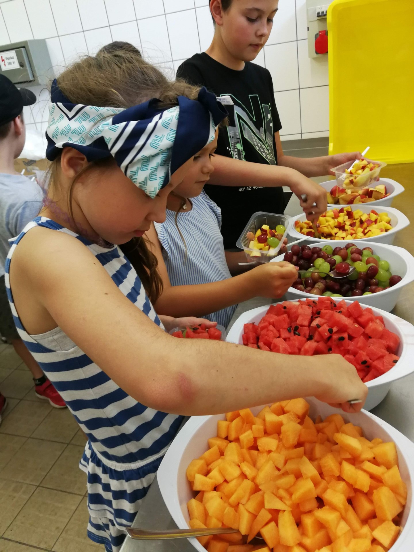 A tábori hét közepén a rendőrség egyik munkatársa érdekes előadást tartott az internet veszélyeiről. A kórház élelmezési osztályának munkatársai segítségével a gyerekek közösen készítették el a környék legfinomabb gyümölcssalátáját.