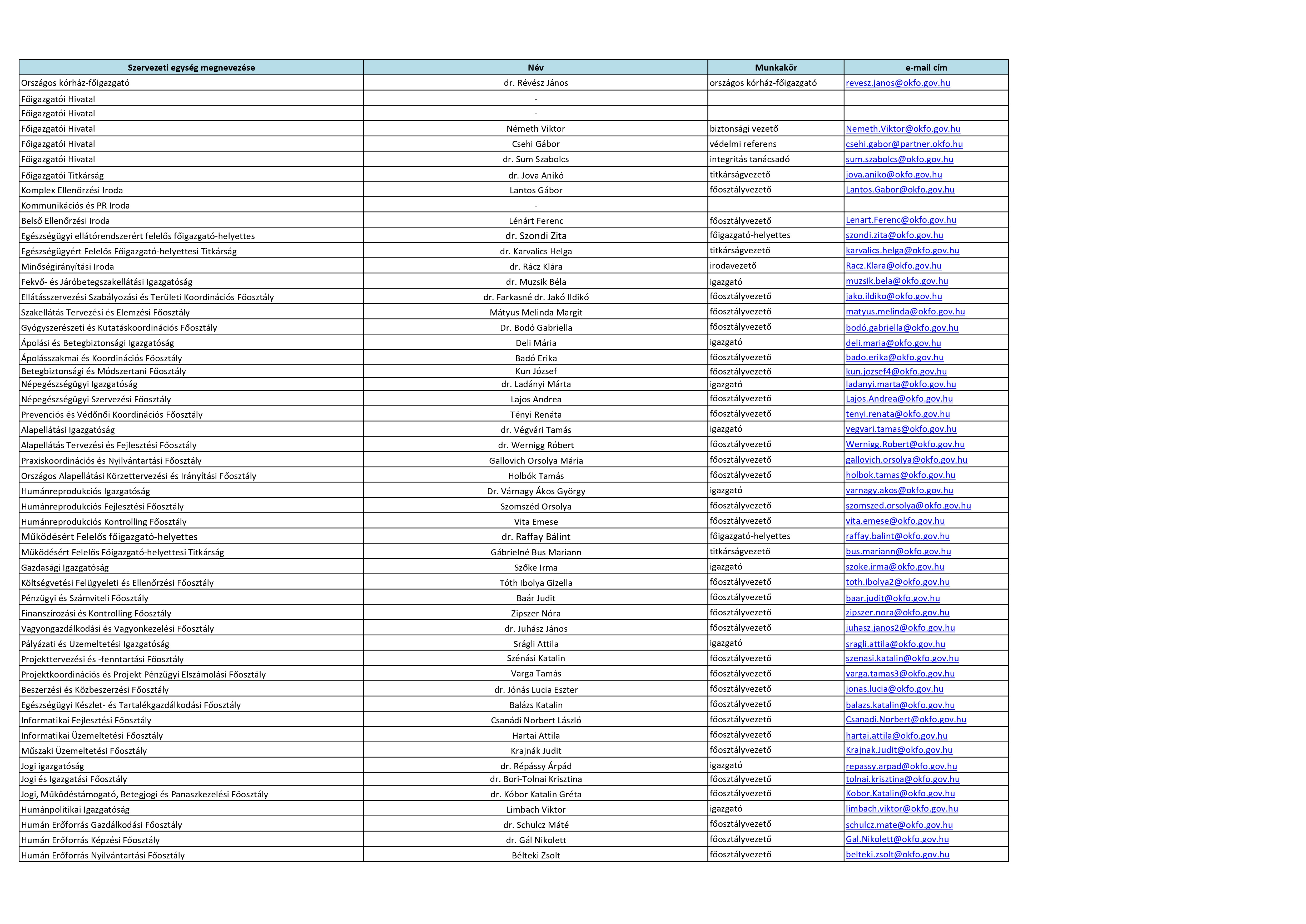 | 18. | A közfeladatot ellátó szervre vonatkozó különös és egyedi közzétételi lista | Nincs a kategóriába tartozó jogszabály alapján közzéteendő közérdekű adat | A változásokat követően azonnal | Az előző állapot törlendő | Jogi Igazgatóság |